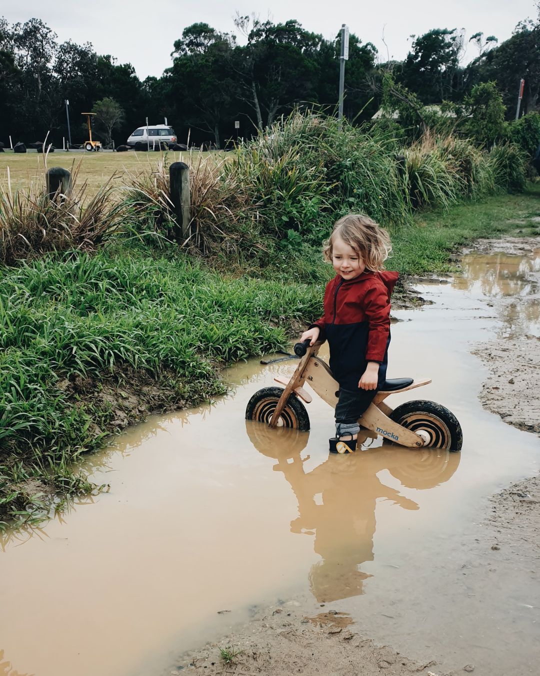 The gradient of the hill made me pause though. It was a gradual, quiet, 200m descent, not overly steep or technical but long enough to build speed. I convinced myself that with enough brake use and me riding alongside coaching him, it would be a great introduction to downhill riding.